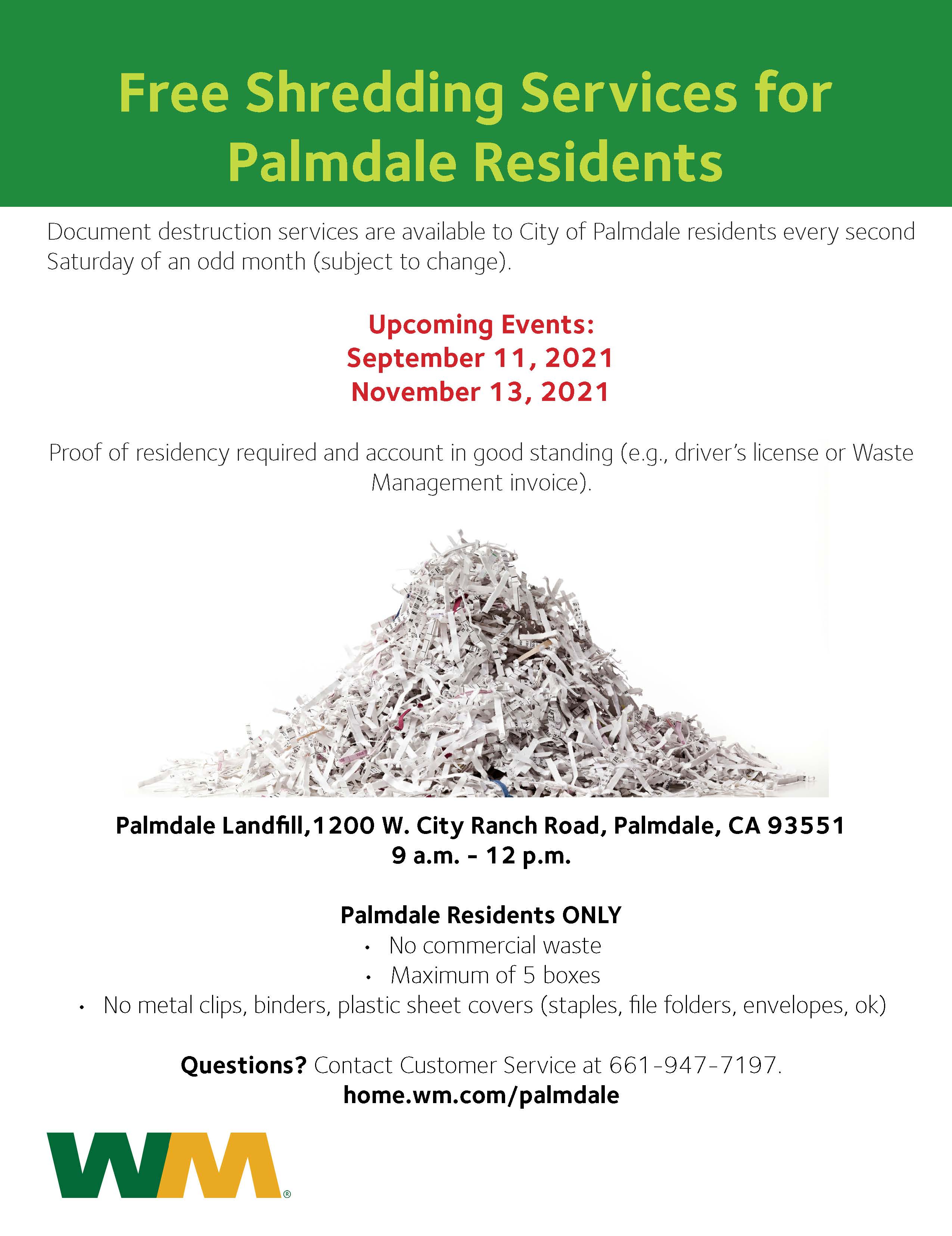Waste Management Of Southern California On Twitter Palmdalecity Residents Looking For A Way To Dispose Of Your Confidential Documents At No Cost Join Us Next Saturday Sept 11 Between 9 A M